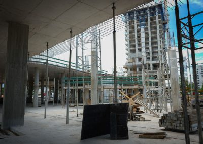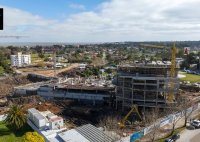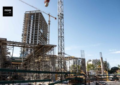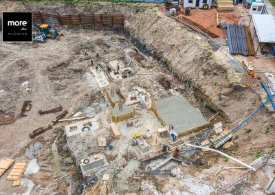 En la torre More, se completó el trabajo de los pilotes perforados y se están ejecutando los cabezales de fundación junto a las vigas; también comenzó el llenado de pilares de hormigón y muros de contención.