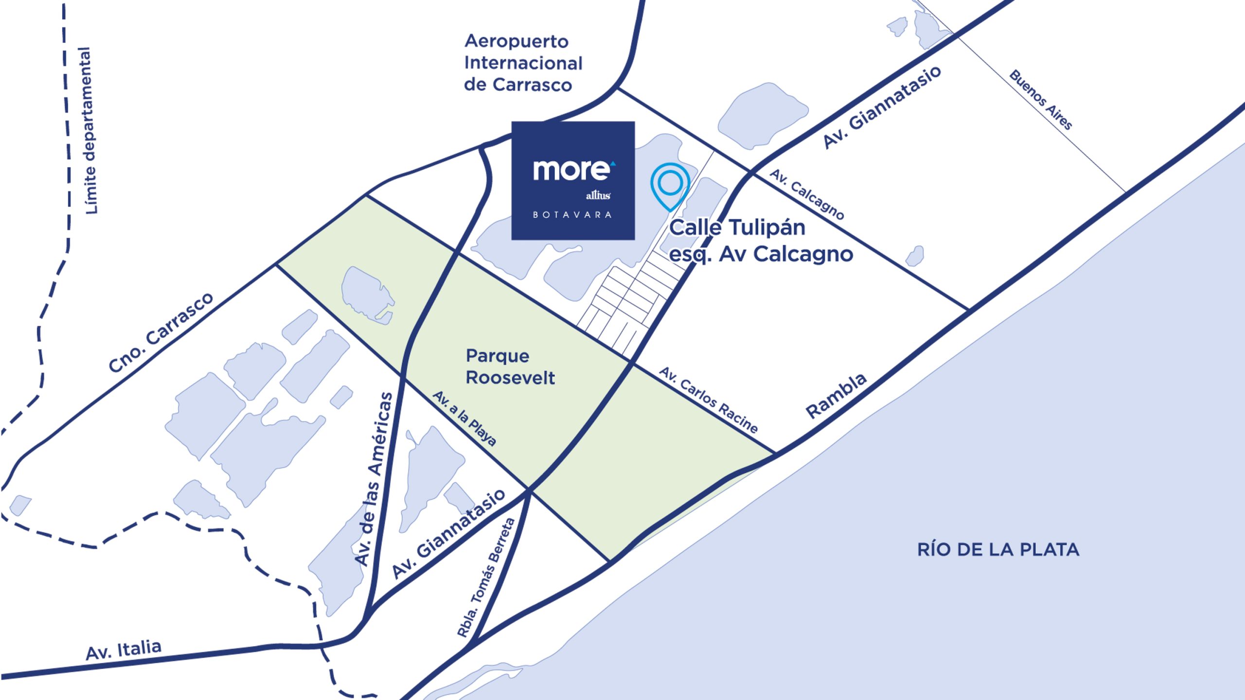 0{{current_slide_index}}entorno inigualable/0{{total_slide_count}}Conectando la dinámica de la ciudad contemporánea con la belleza de un entorno natural inigualable.0{{current_slide_index}}ubicación/0{{total_slide_count}}MORE BOTAVARA es un complejo residencial de tres torres ubicadas en el predio de la calle Tulipán en Ciudad de la Costa, con frentes al Lago Pesquero y Lago Botavara.Tulipán esq. Av. CalcagnoLagos de Carrasco Este0{{current_slide_index}}Diseño/0{{total_slide_count}}MORE BOTAVARA contará con tres torres de diseño contemporáneo y vistas únicas a los lagos Calcagno y Pesquero. Ambientes amplios, luminosos y con parrilleros exclusivos en todas las unidades.0{{current_slide_index}}Amenities/0{{total_slide_count}}Amenities y equipamiento de primer nivel, enfocados a hacer tu vida más cómoda y sencilla. En MORE BOTAVARA todos los amenities cuentan con mobiliario contemporáneo, aire acondicionado inverter, WiFi y accesibilidad universal.0{{current_slide_index}}Amenities/0{{total_slide_count}}Amenities pensados para el disfrute de todos. MORE BOTAVARA contará con piscina exterior climatizada, muelle y guardería náutica, paseo exterior entre torres,gimnasio equipado, kids club, lavadero, barbacoa con parrillero y livings exteriores.0{{current_slide_index}}Calidad/0{{total_slide_count}}En sus apartamentos de uno, dos y tres dormitorios, los habitantes de MORE BOTAVARA, contarán, entre muchas otras características sobresalientes, con aire acondicionado en dormitorios y áreas sociales, puertas de acceso con cerradura electrónica y aberturas de alta prestación en aluminio negro.0{{current_slide_index}}Beneficios/0{{total_slide_count}}MORE BOTAVARA es un proyecto comprendido en la Ley de Vivienda Promovida por lo que incluye importantes exoneraciones fiscales.UNIDADESweb moreVISTAS